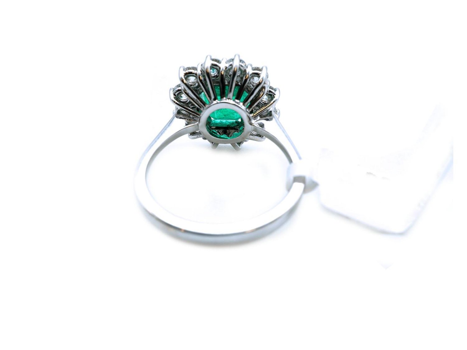 ANELLO Cestino in oro bianco 18Kt con diamanti ct 0.96 G Vs e smeraldo ct 2.16 Misura 14 Ref. AN45. NUOVO!