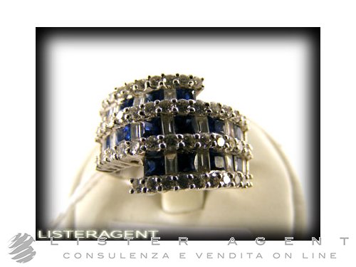 Anello in oro bianco 18kt diamanti e zaffiri blu