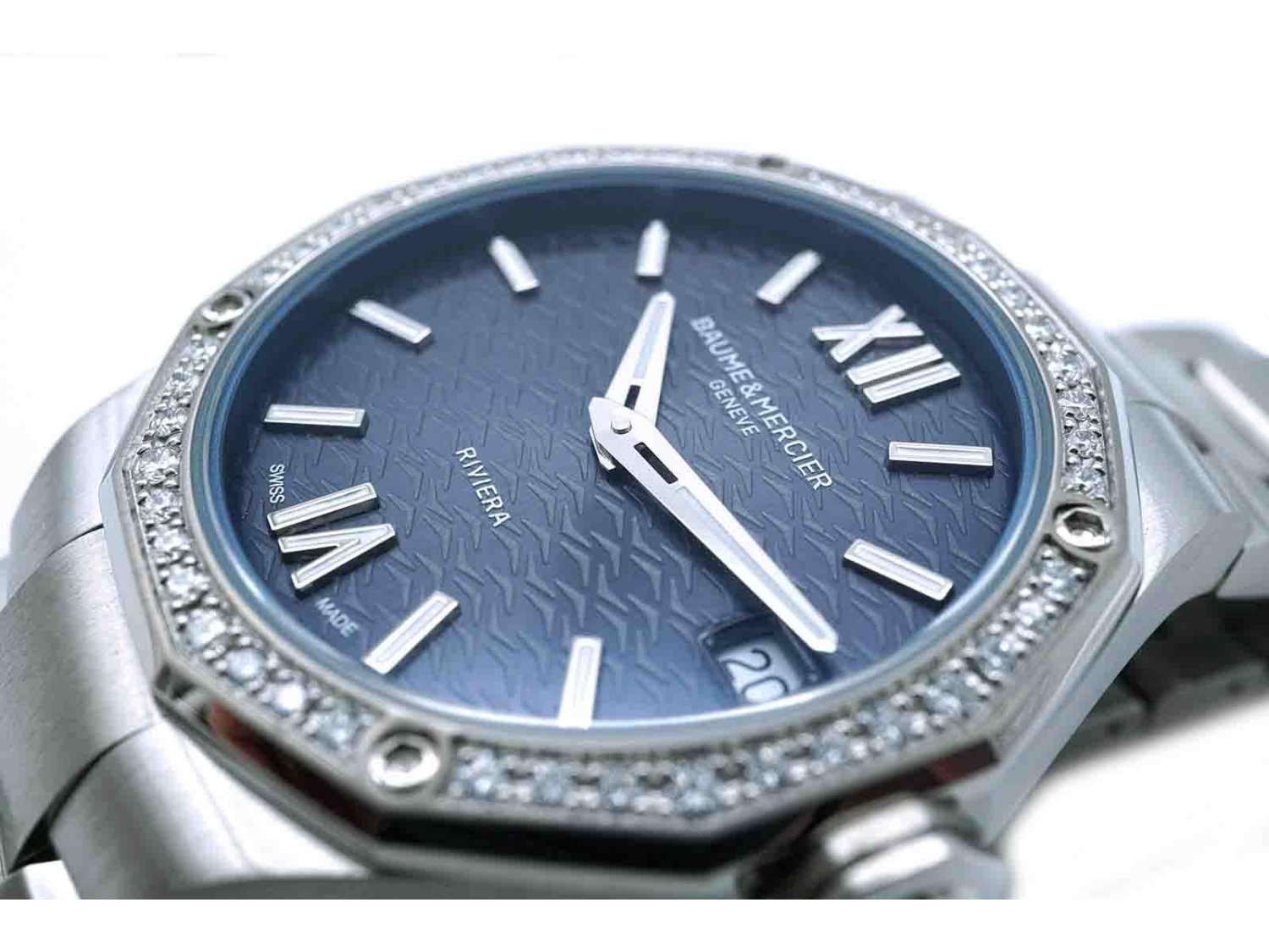 BAUME & MERCIER orologio Riviera 10765 in acciaio e diamanti Blu notte Ref. 10765. NUOVO!