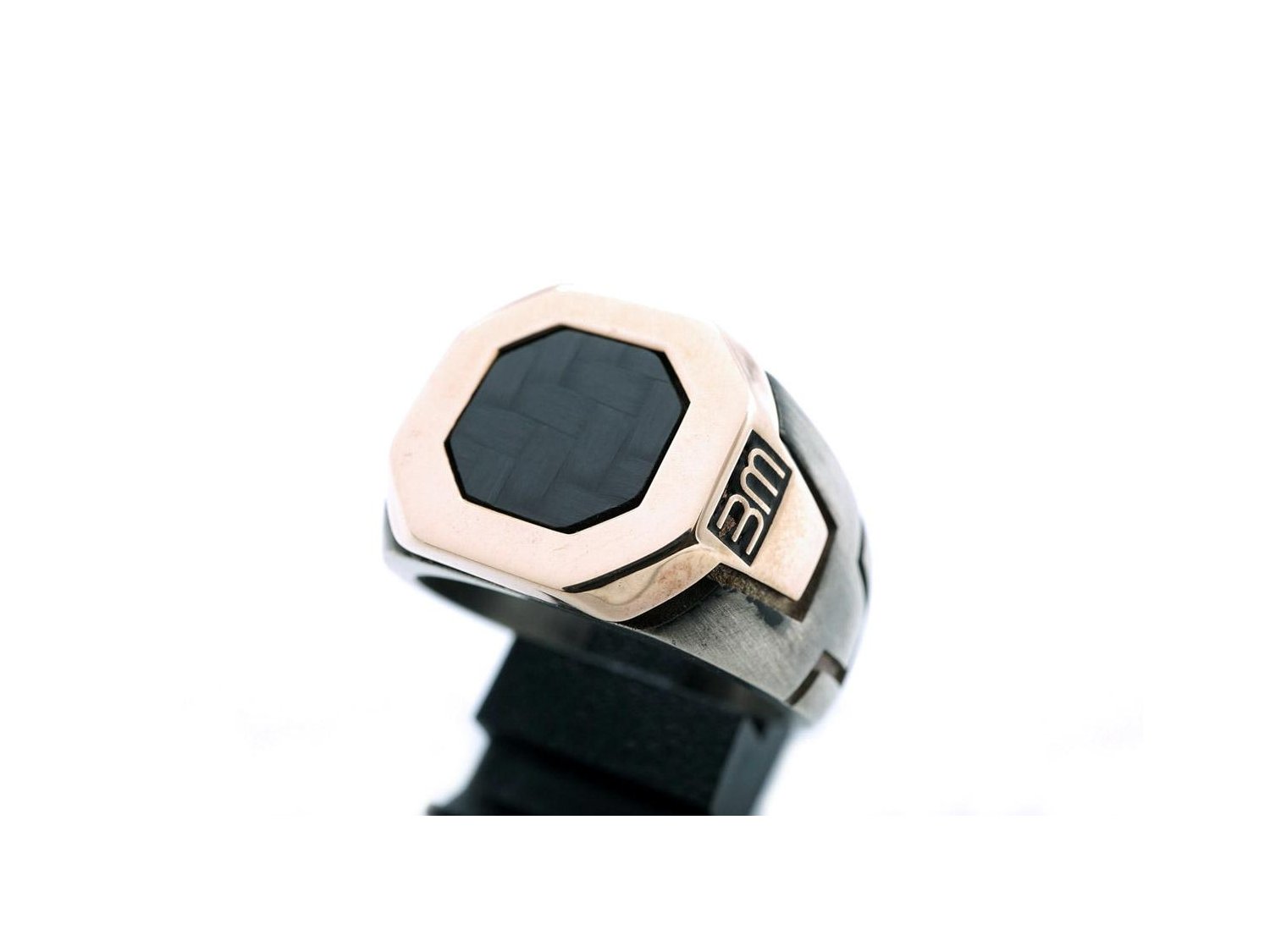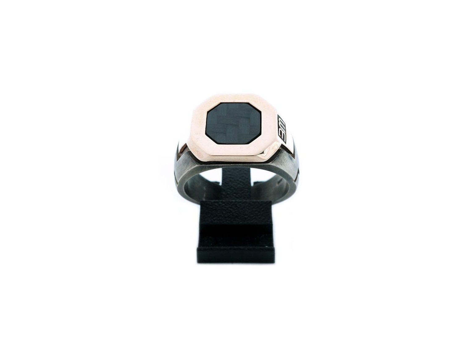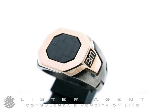 BLACKMINE anello in oro rosa 9Kt e argento 925 brunito con fibra di carbonio Misura 24.5 Ref. AN36910427. NUOVO!