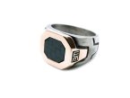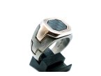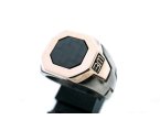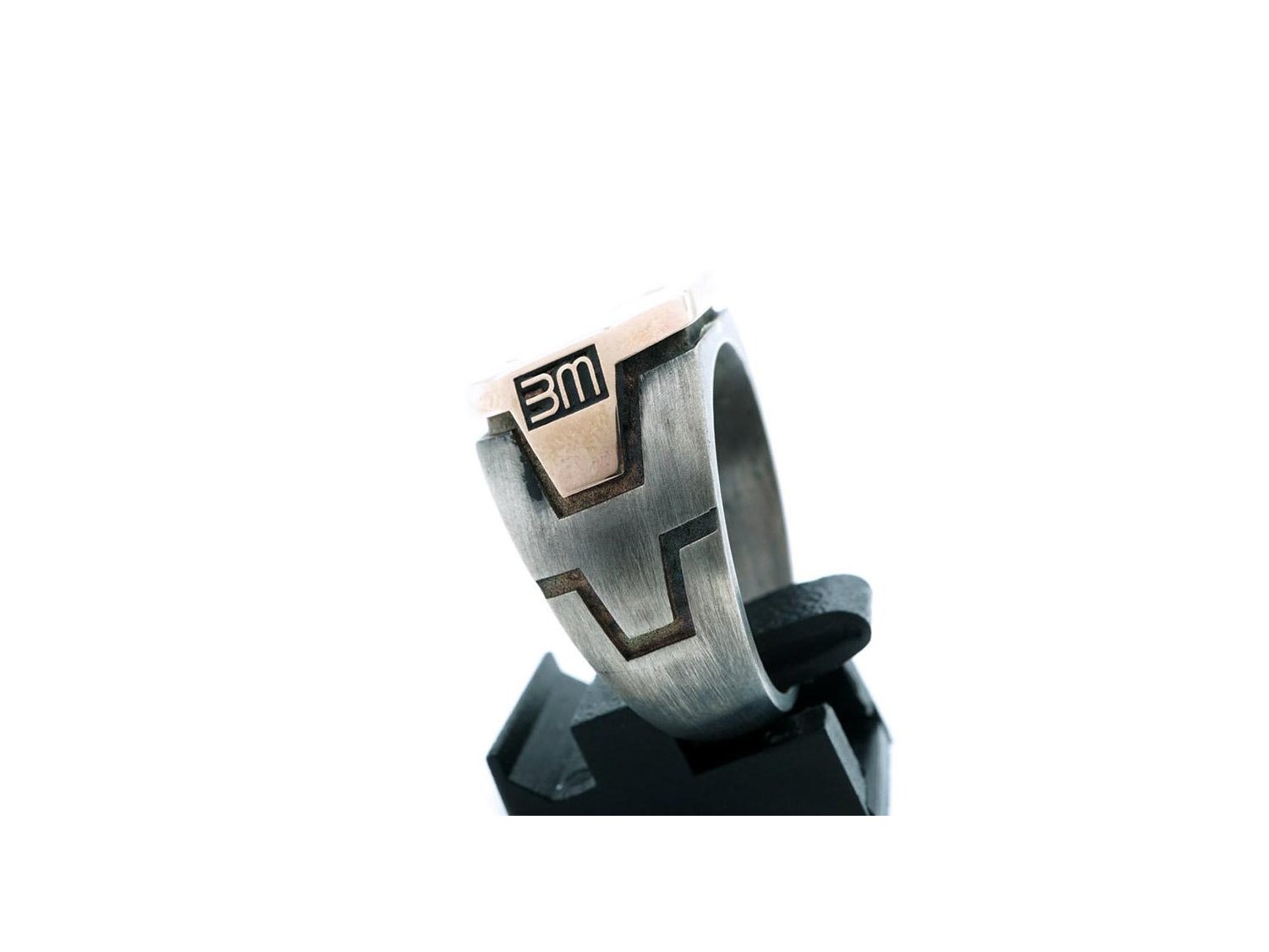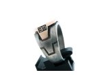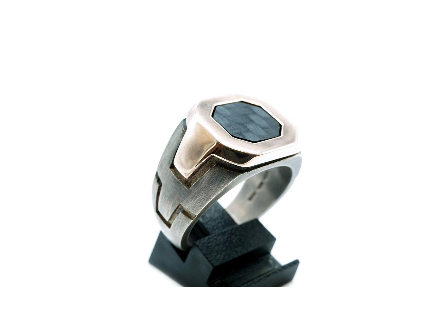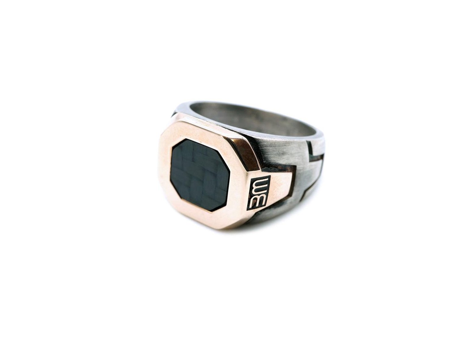 BLACKMINE anello in oro rosa 9Kt e argento 925 brunito con fibra di carbonio Misura 24.5 Ref. AN36910427. NUOVO!