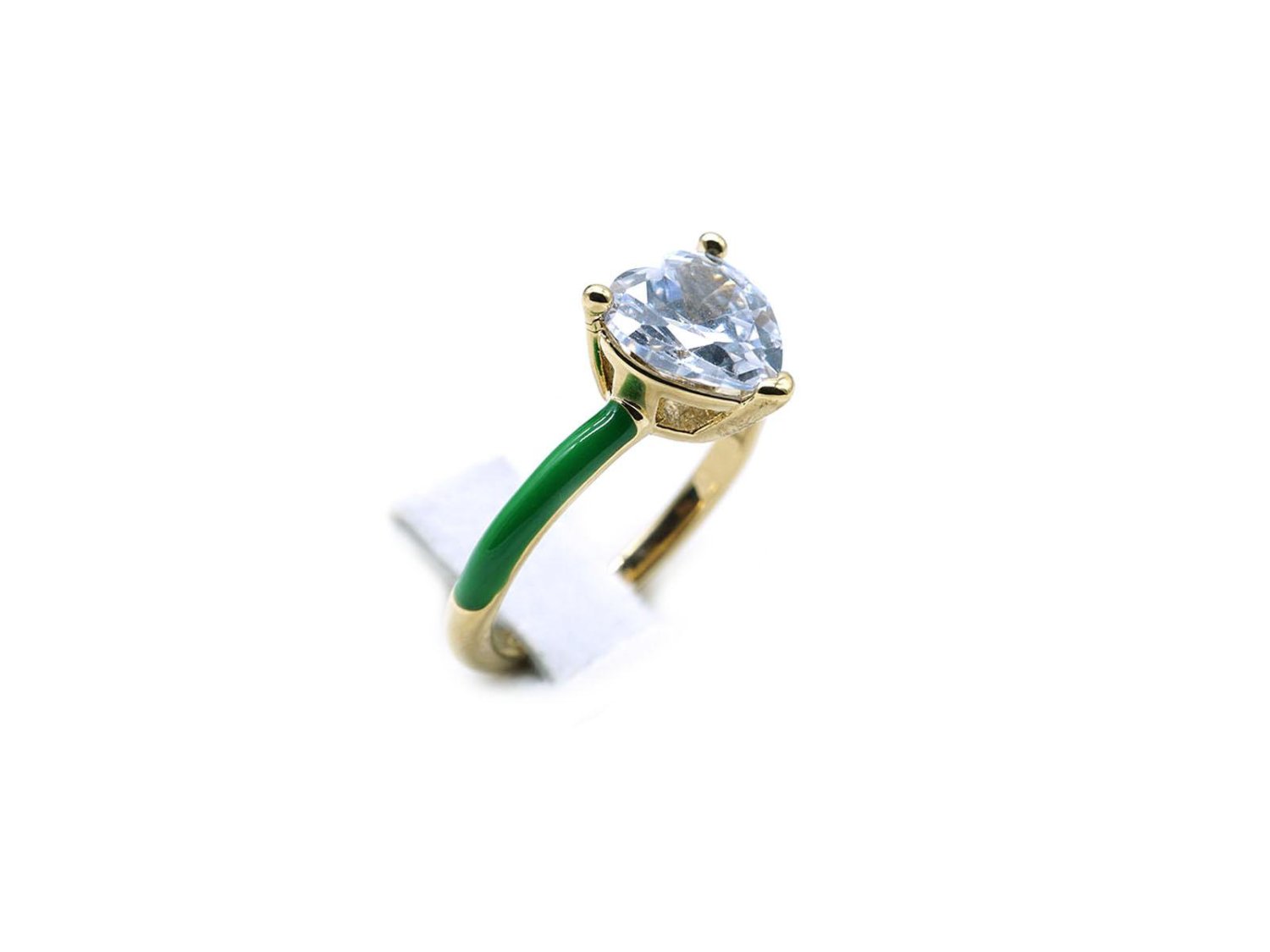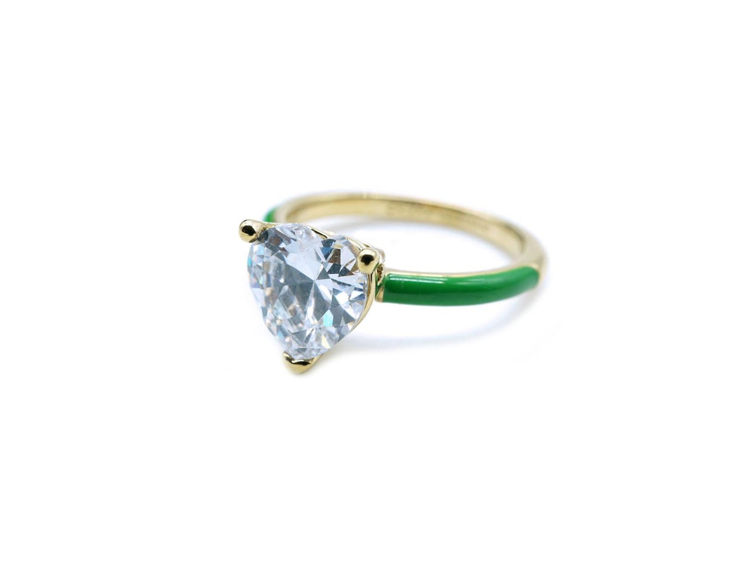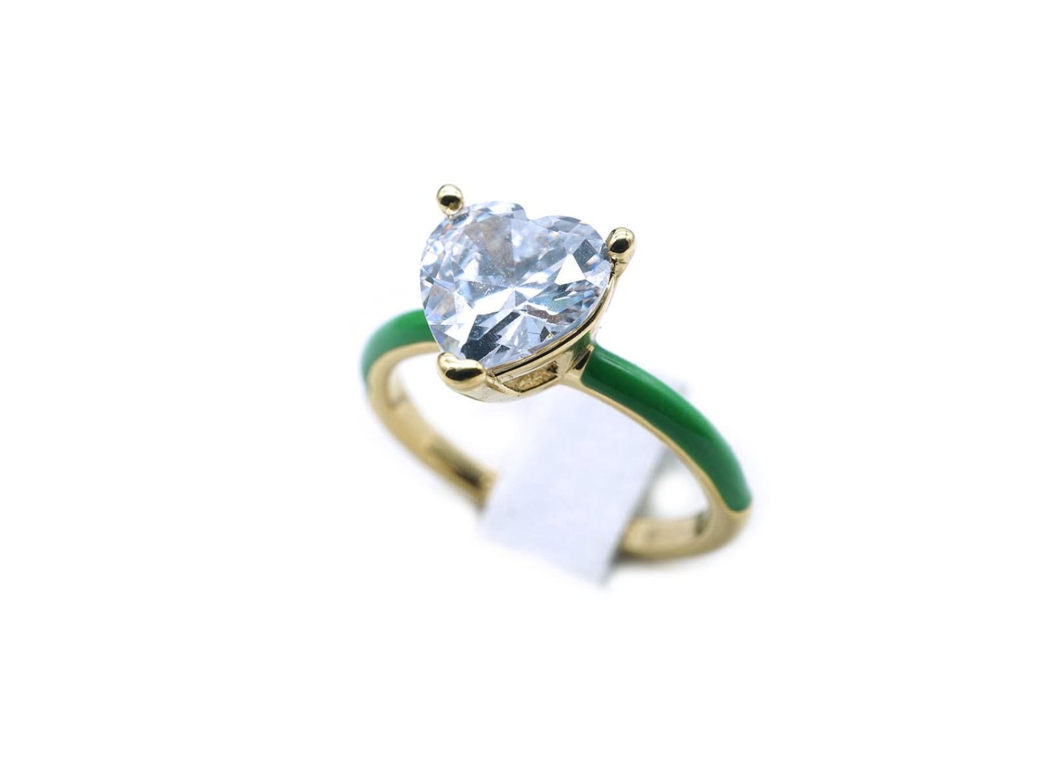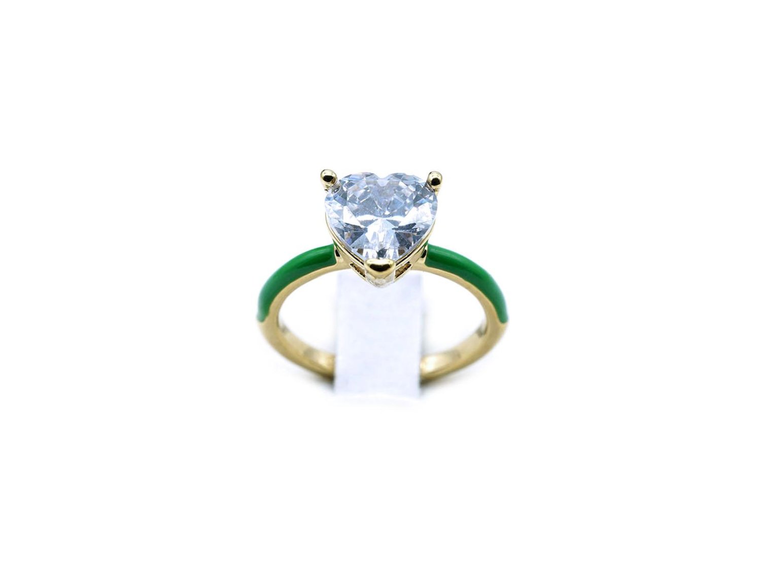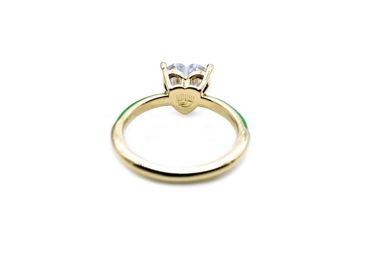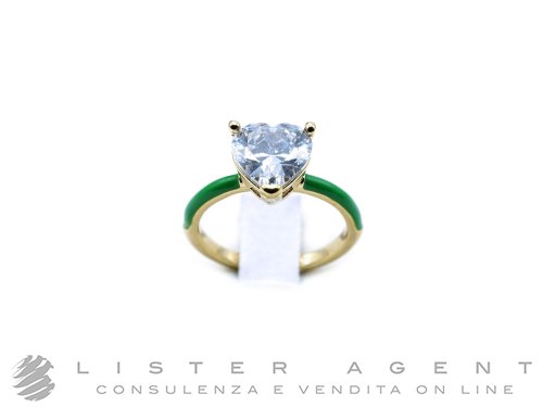 CHIARA FERRAGNI anello Cuore in metallo placcato oro giallo e smalto verde con zircone Misura 12 Ref. J19AVI37012. NUOVO!