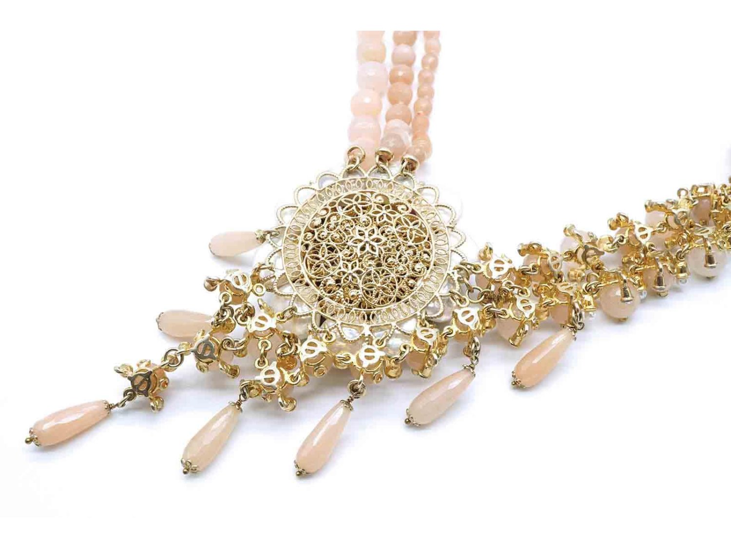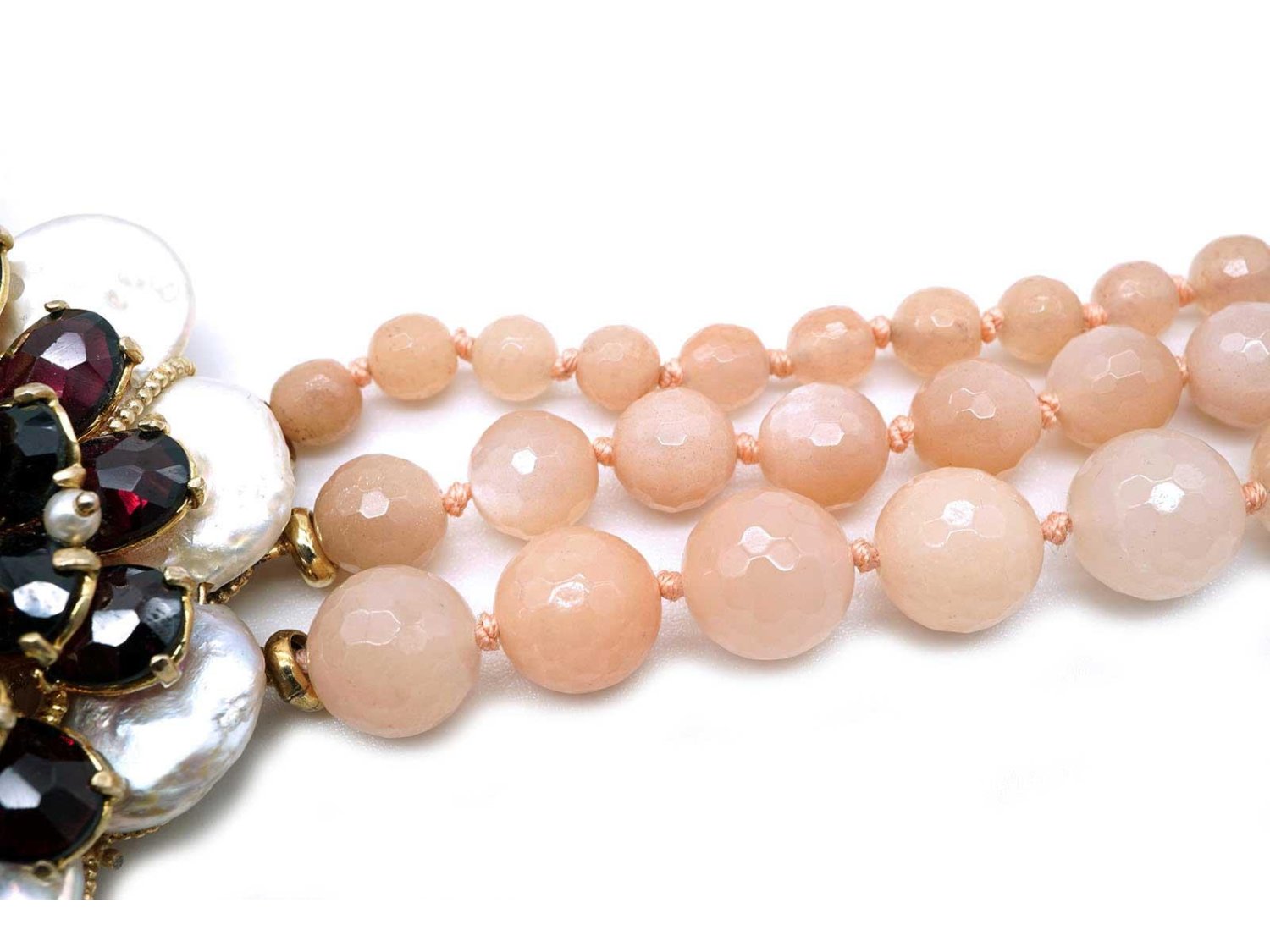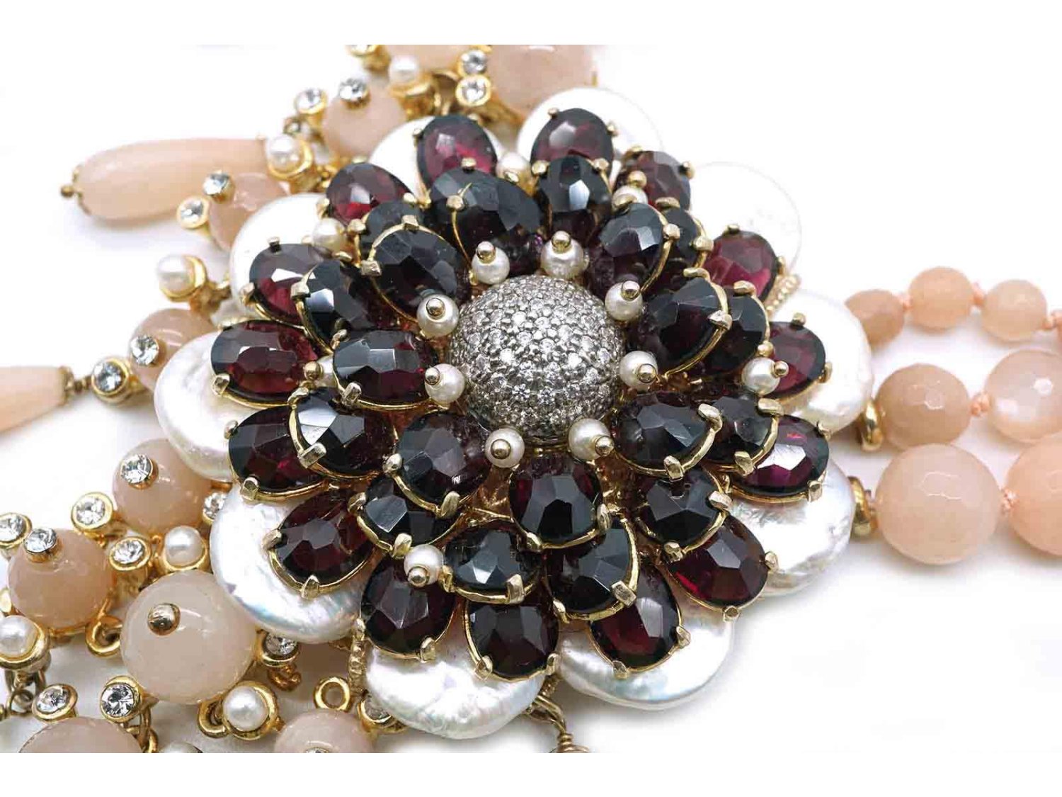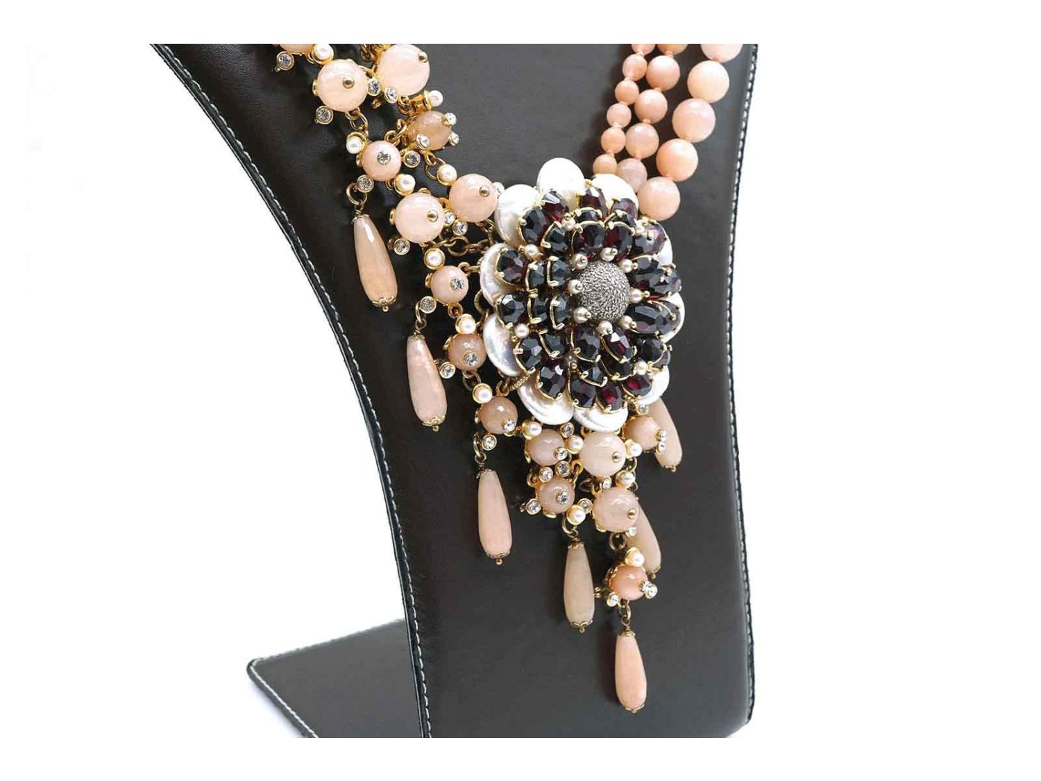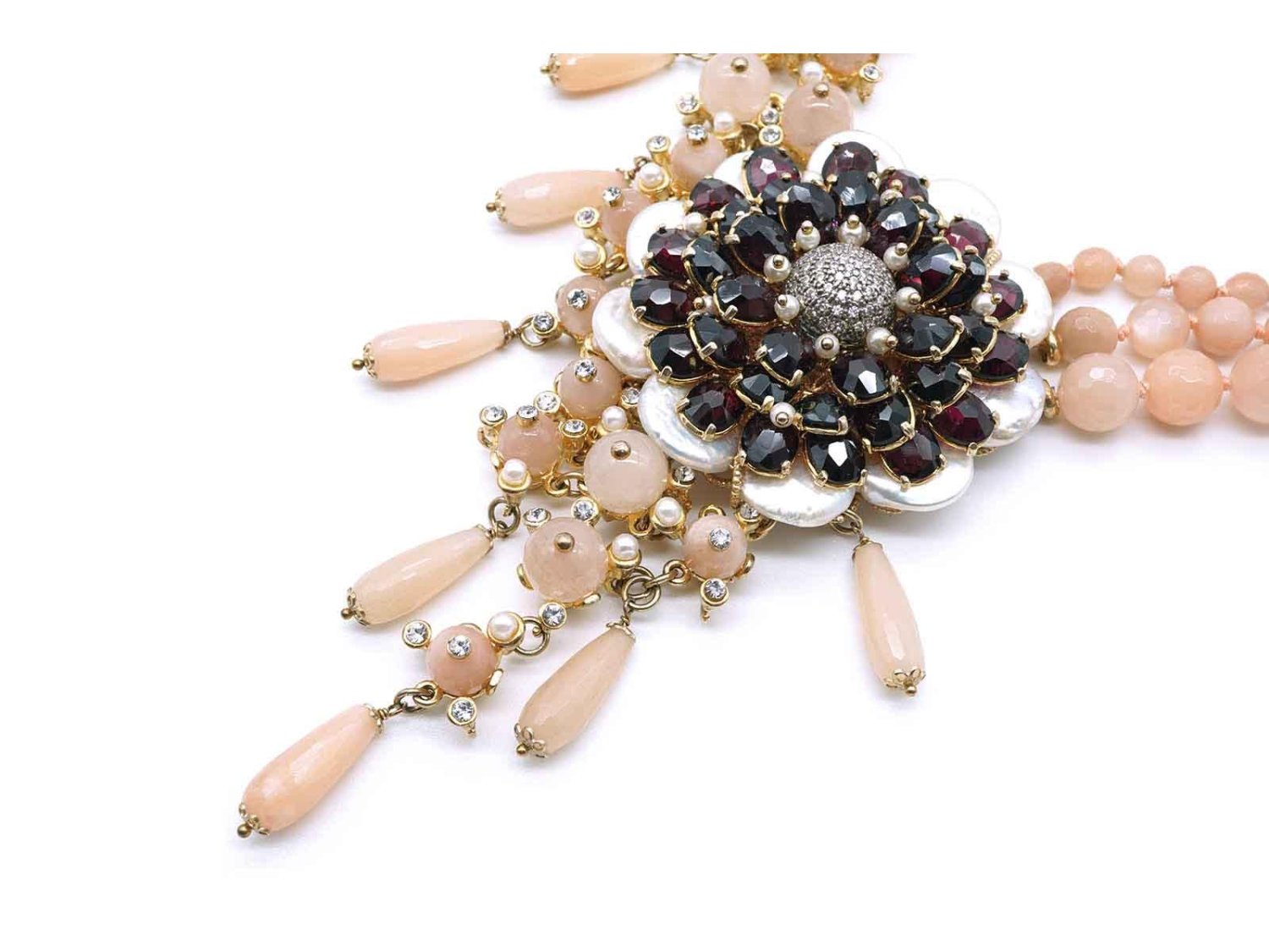 COLLANA in argento 925 placcato oro con quarzi, madre perla, granati e swarovski. NUOVA!