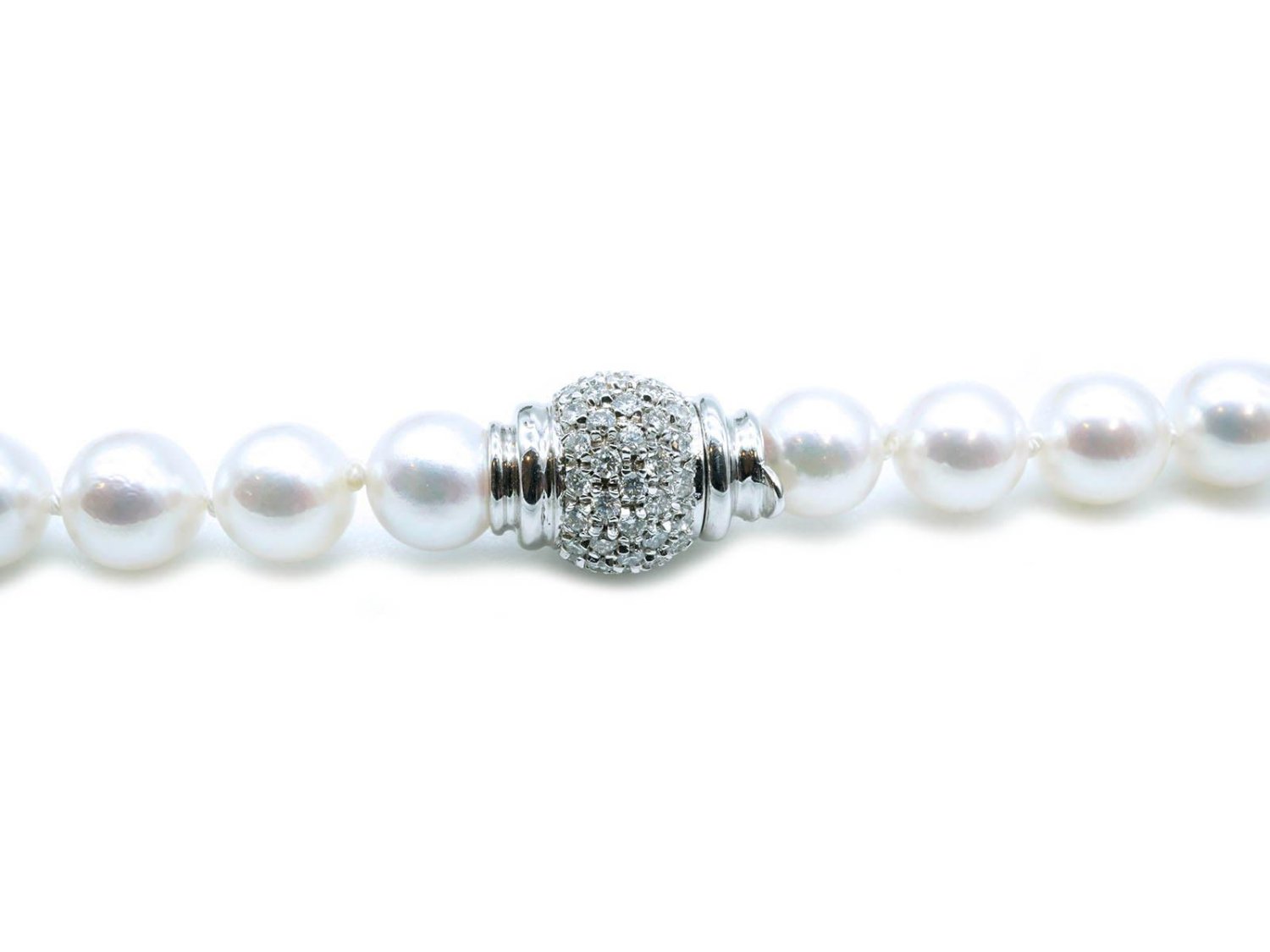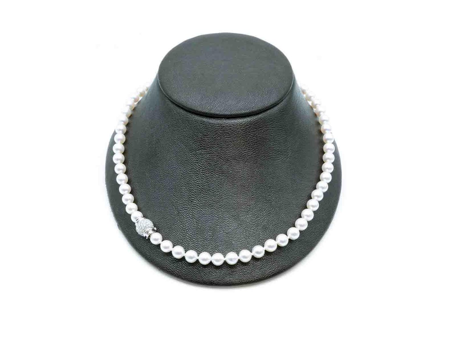 COLLANA perle bianche Akoya coltivazione in acqua salata mm 7.00 con chiusura in oro bianco 18Kt e diamanti ct 0.62 G IF. NUOVA!