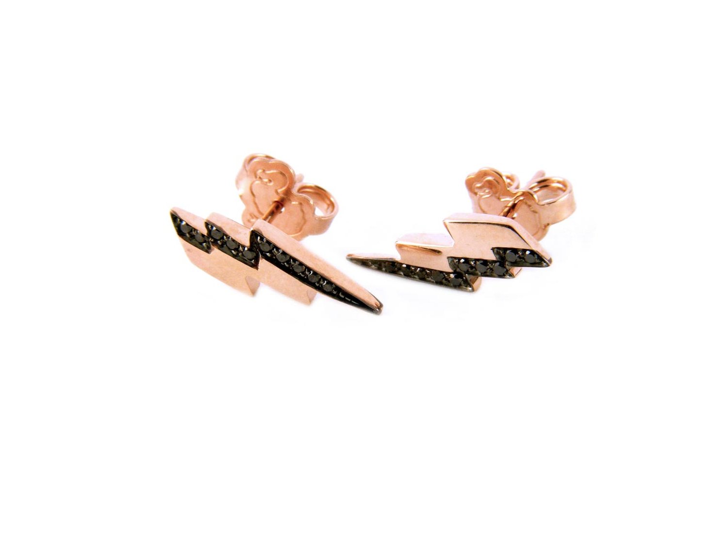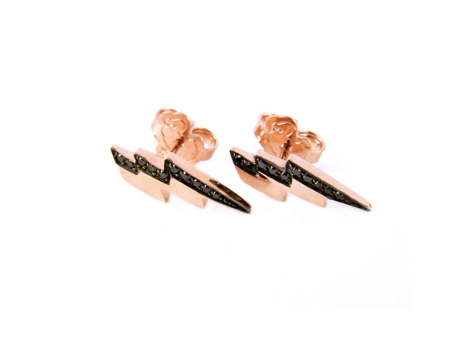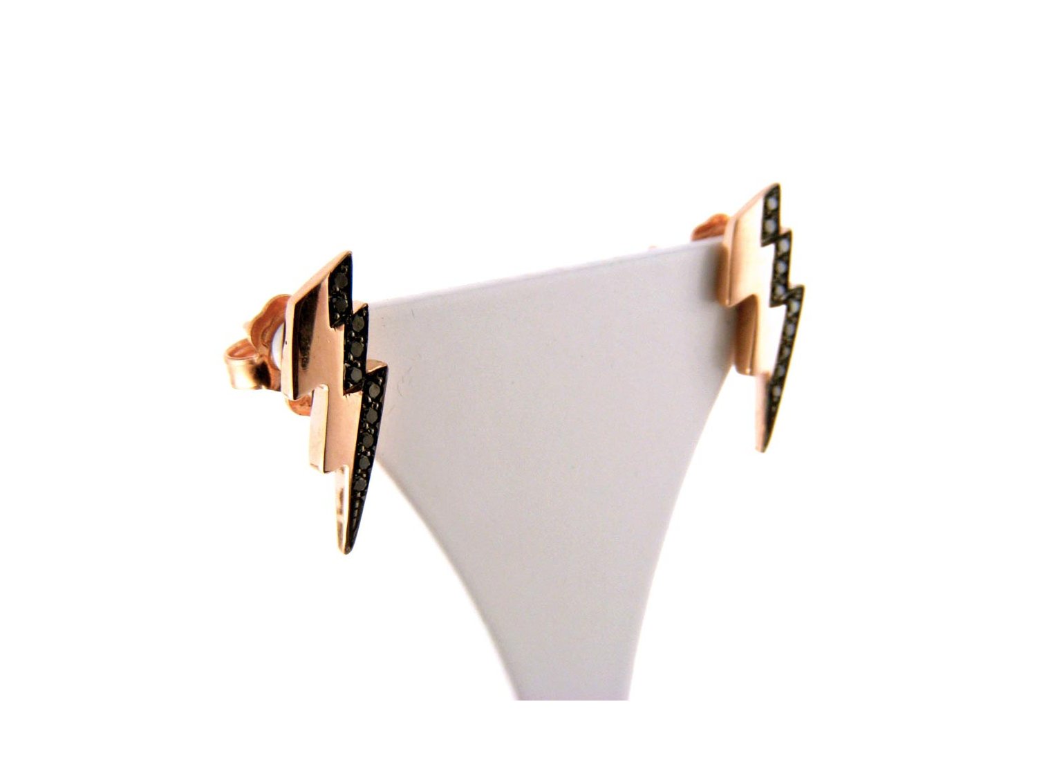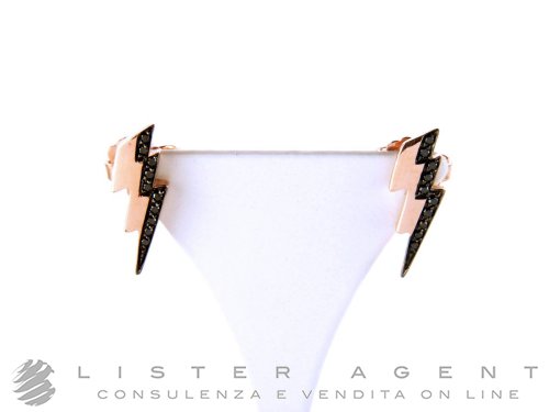 DODO by Pomellato orecchini Fulmine in oro rosa 9Kt con diamanti neri ct 0,10 Ref. DOHFUL/9/BB. NUOVI!