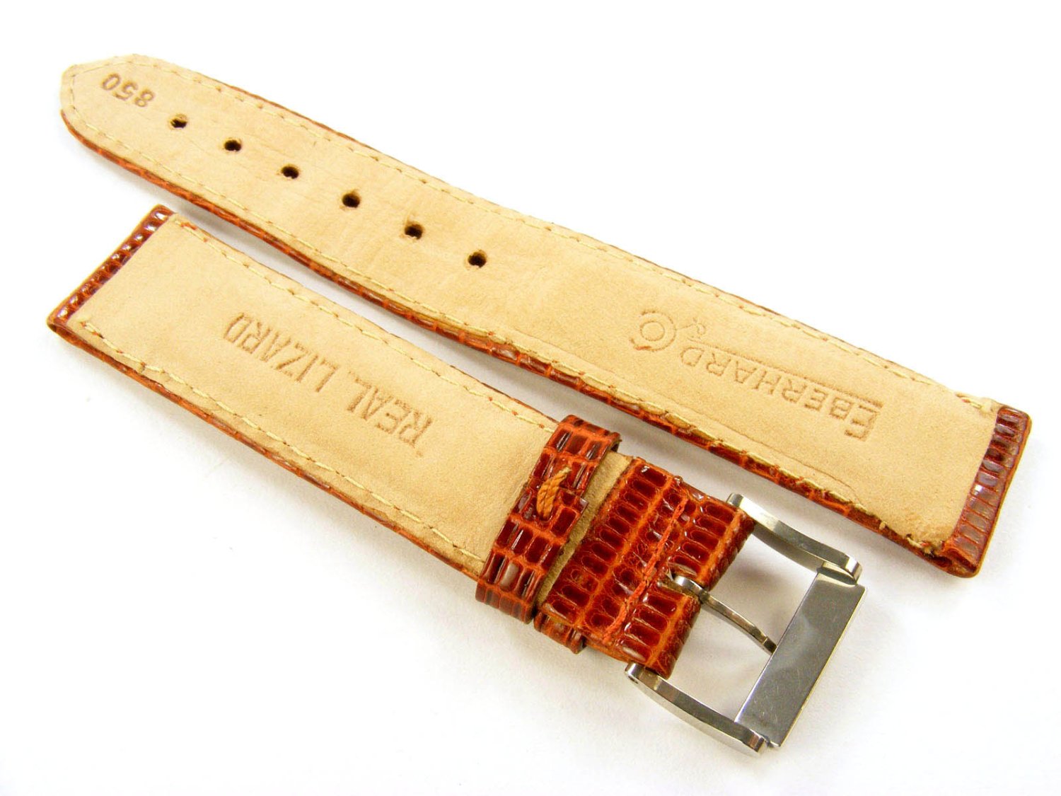 EBERHARD cinturino in pelle di lucertola marrone MM 18,00 con fibbia acciaio. NUOVO!