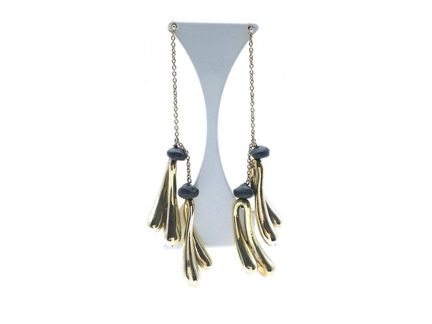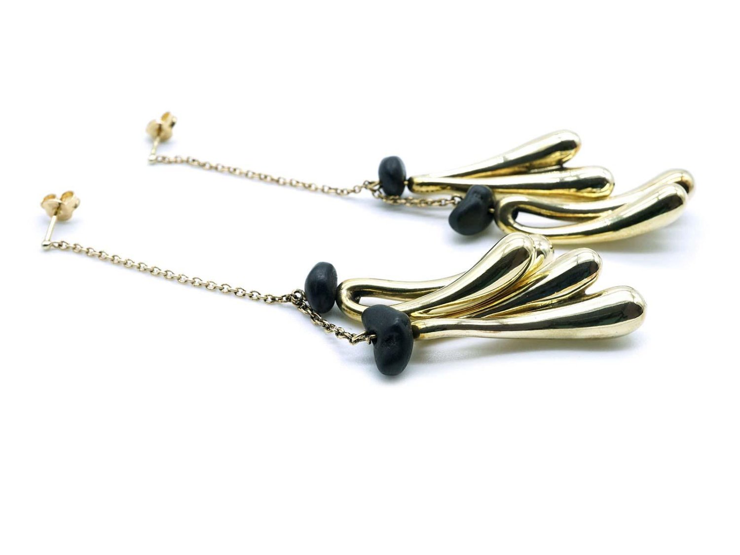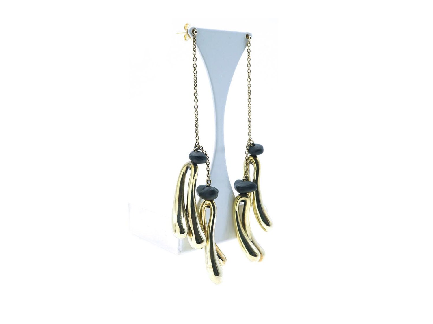 G DI FRANCO orecchini in oro giallo18Kt elettroformato con pietra lavica. NUOVI!