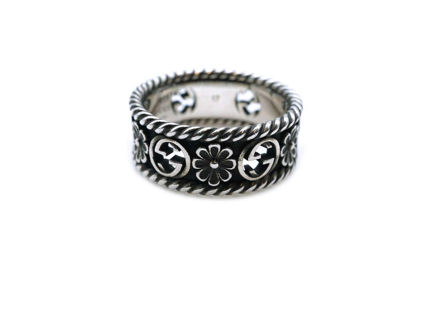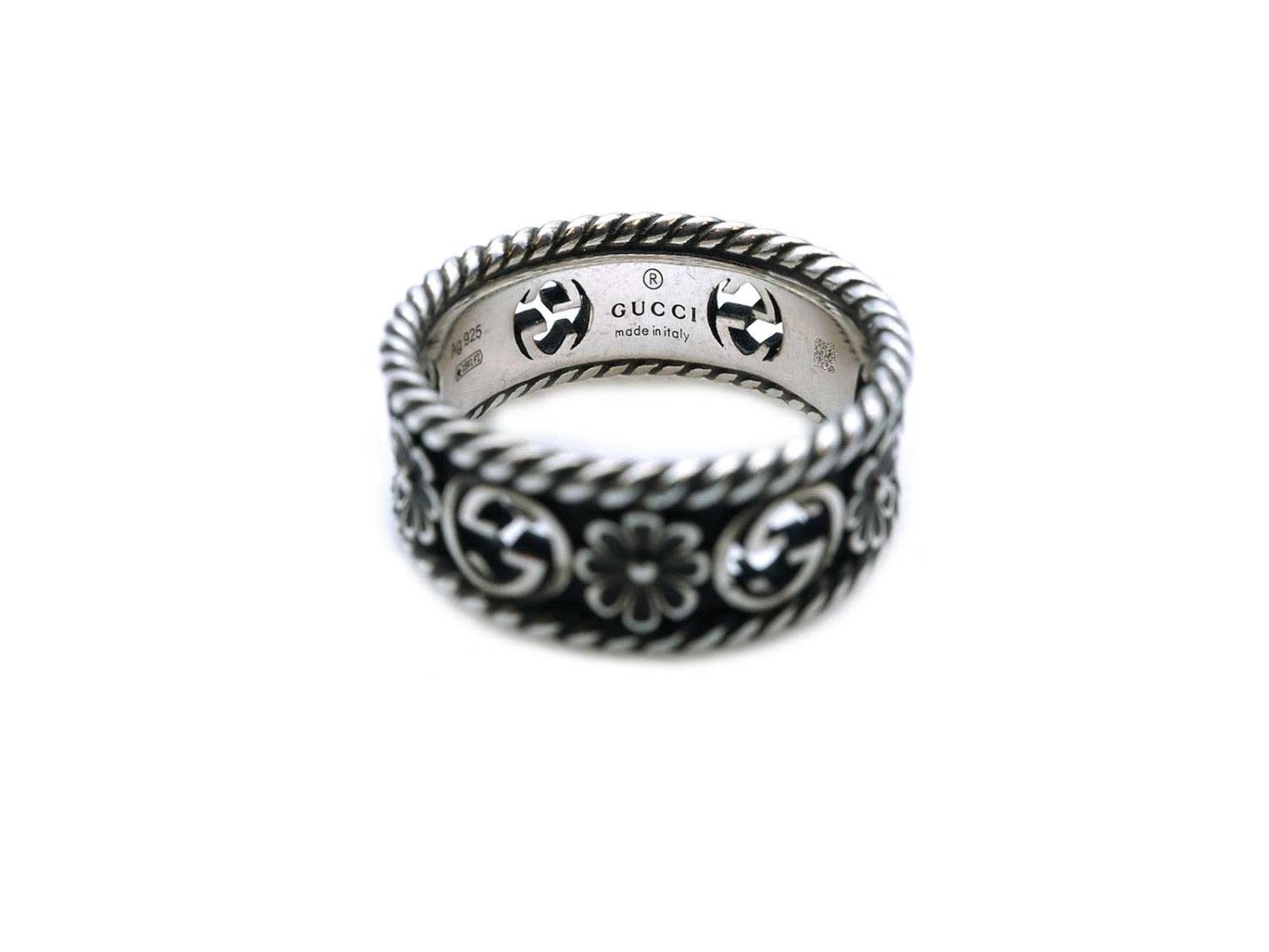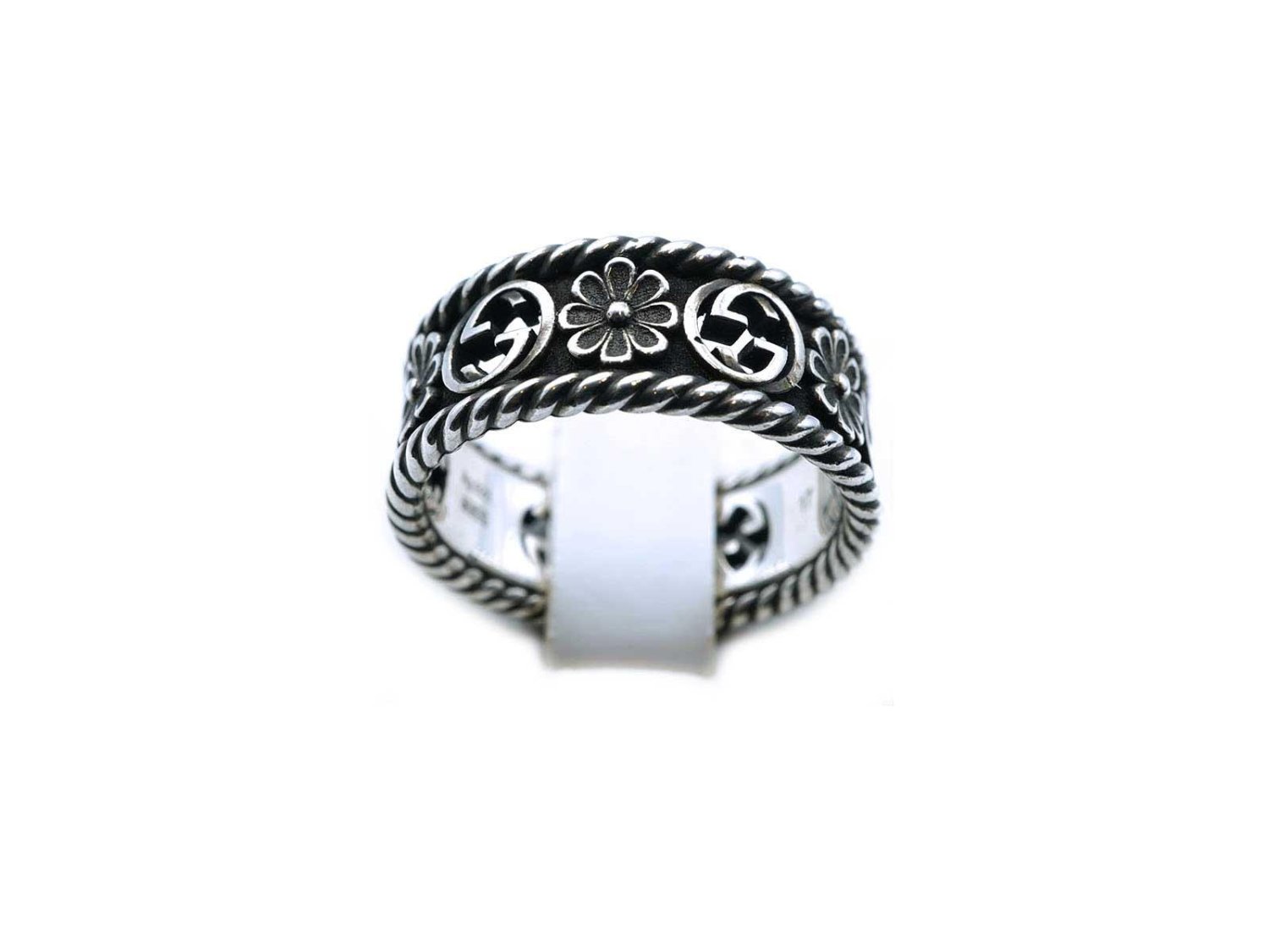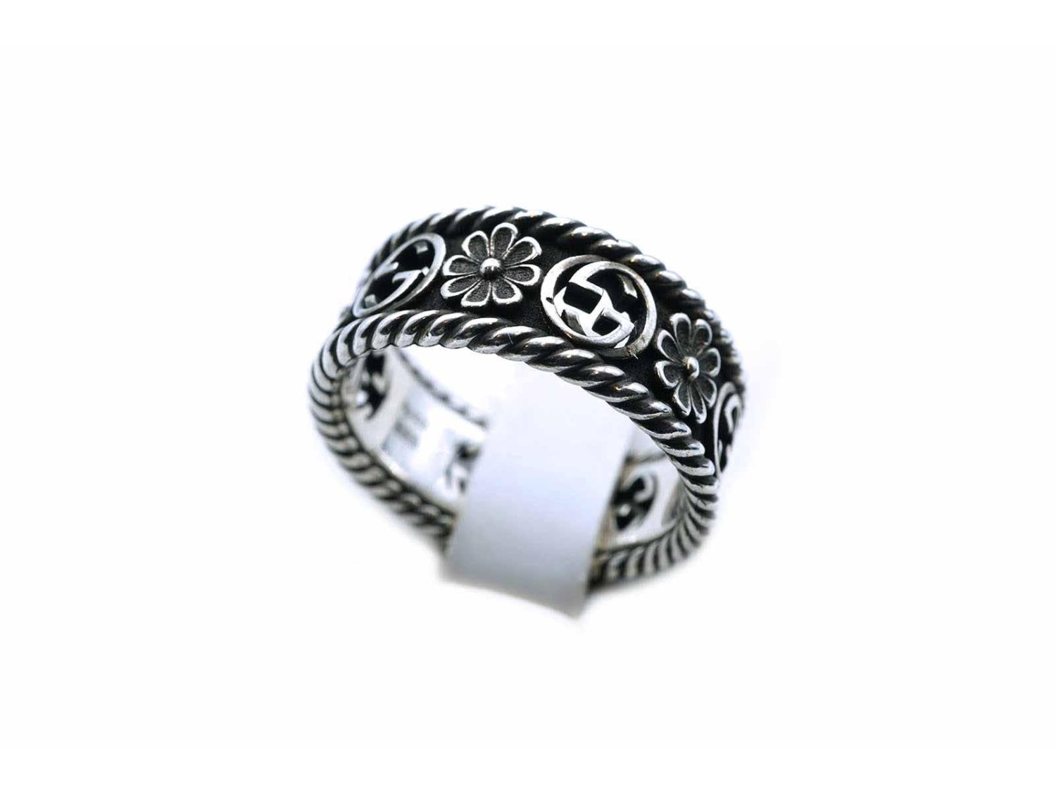 GUCCI anello Interlocking GG Flower in argento 925 Ref. YBC5772630010. NUOVO!