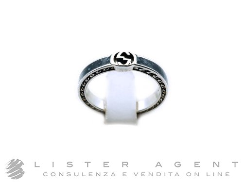 GUCCI anello Interlocking in argento 925 e smalto nero Ref. YBC7016200010. NUOVO!