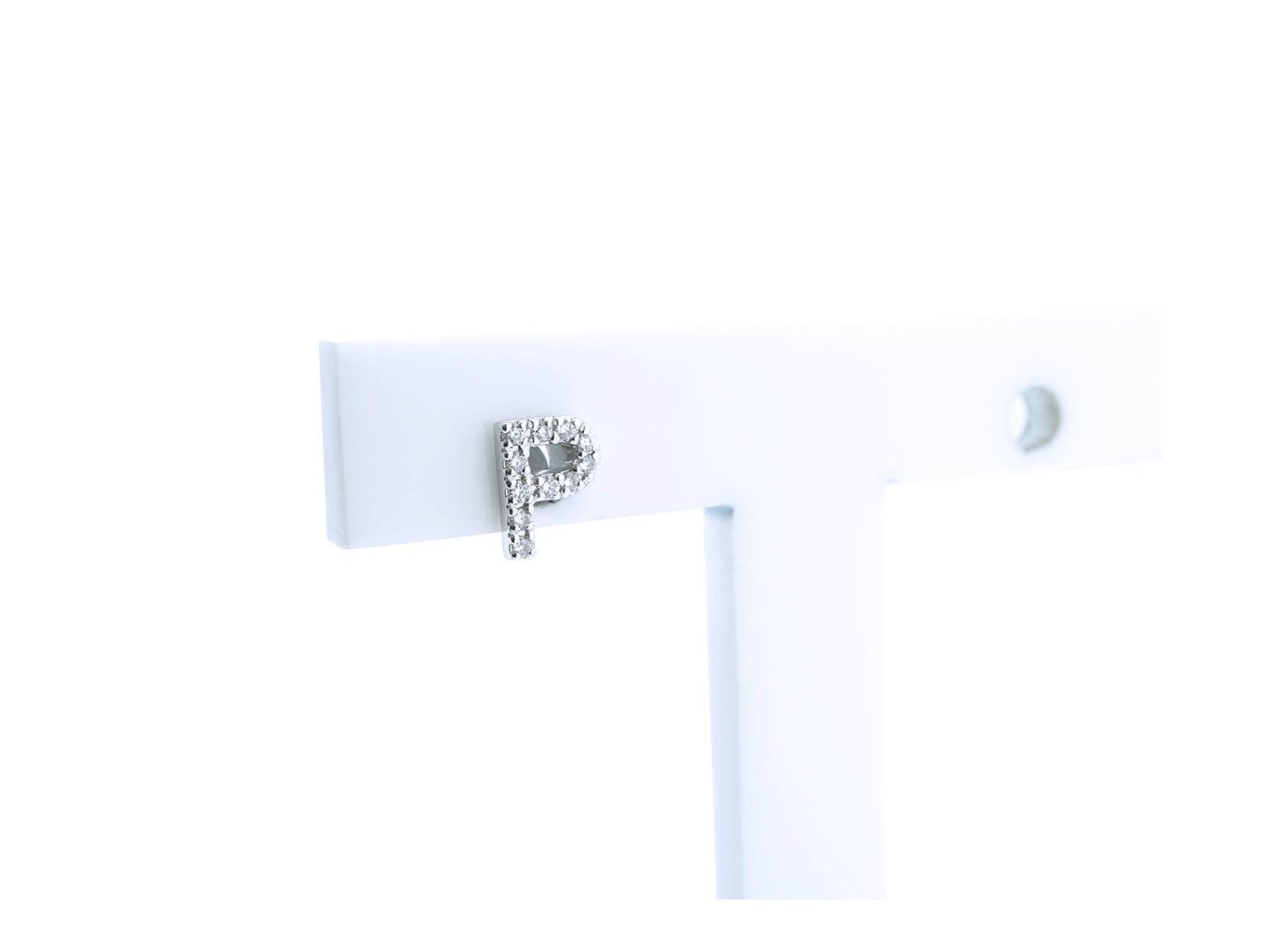 IGM orecchino singolo Lettera P in oro bianco 18Kt e diamanti. NUOVI!