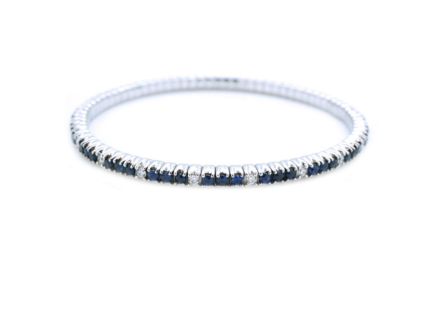 JARRETIERE bracciale elastico Tennis in oro bianco 18Kt con diamanti ct 0.50 e zaffiri blu ct 2.26 Ref. BRF-3ZF/W. NUOVO!