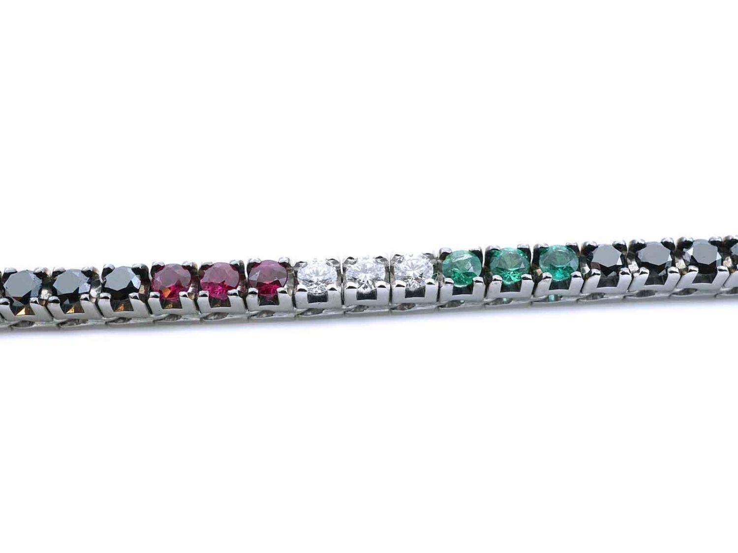 MASSIMO RAITERI bracciale Tennis in oro bianco 18Kt con diamanti neri, rubini diamanti bianchi e smeraldi. NUOVO!