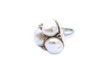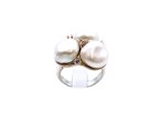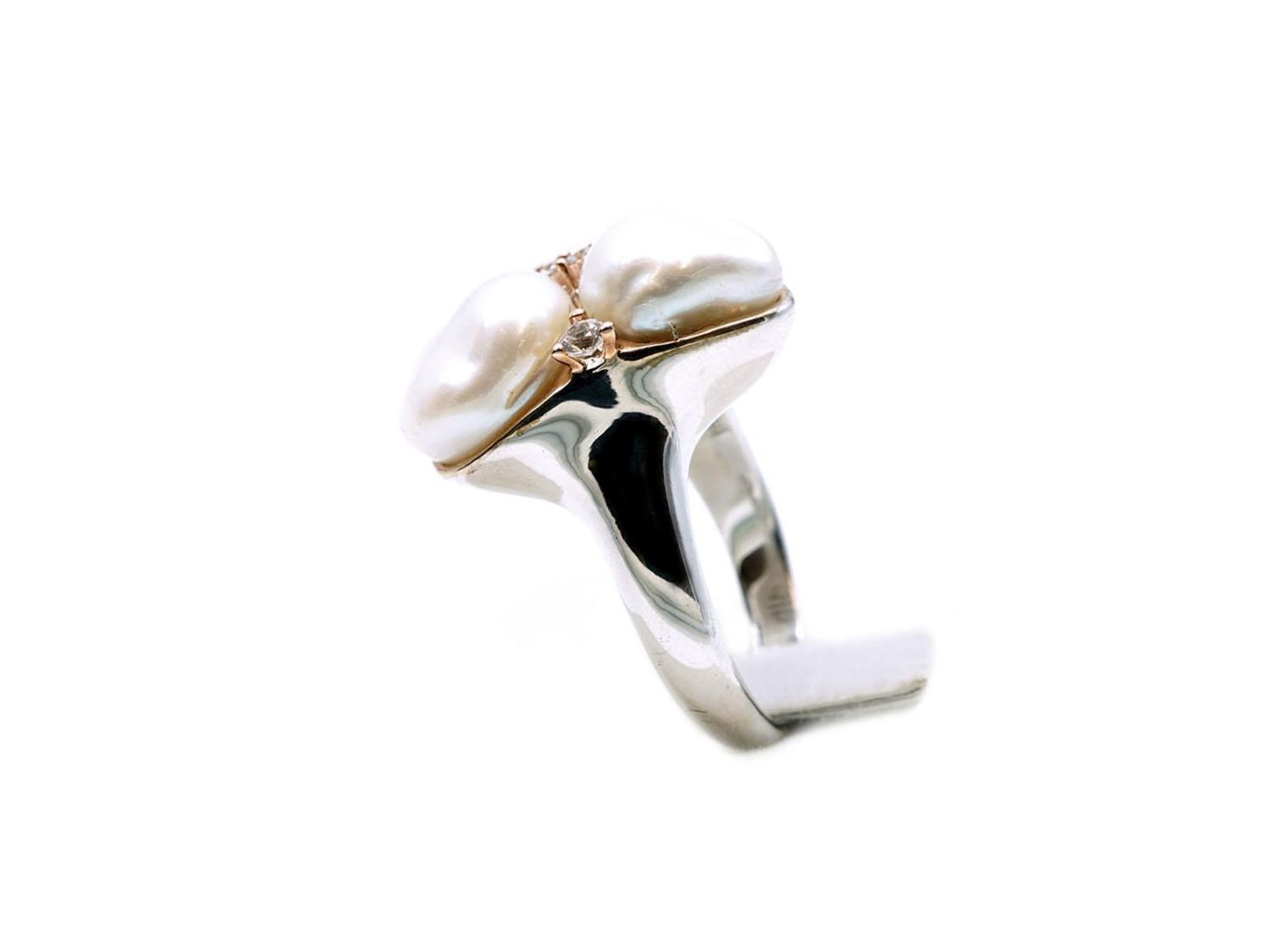 MIMI' anello Blanche con simbolo ogni Bene in argento 925 e oro rosa 18Kt con zaffiri bianchi e perle barocche naturali Misura 20 Ref. AZ292C1Z. NUOVO!