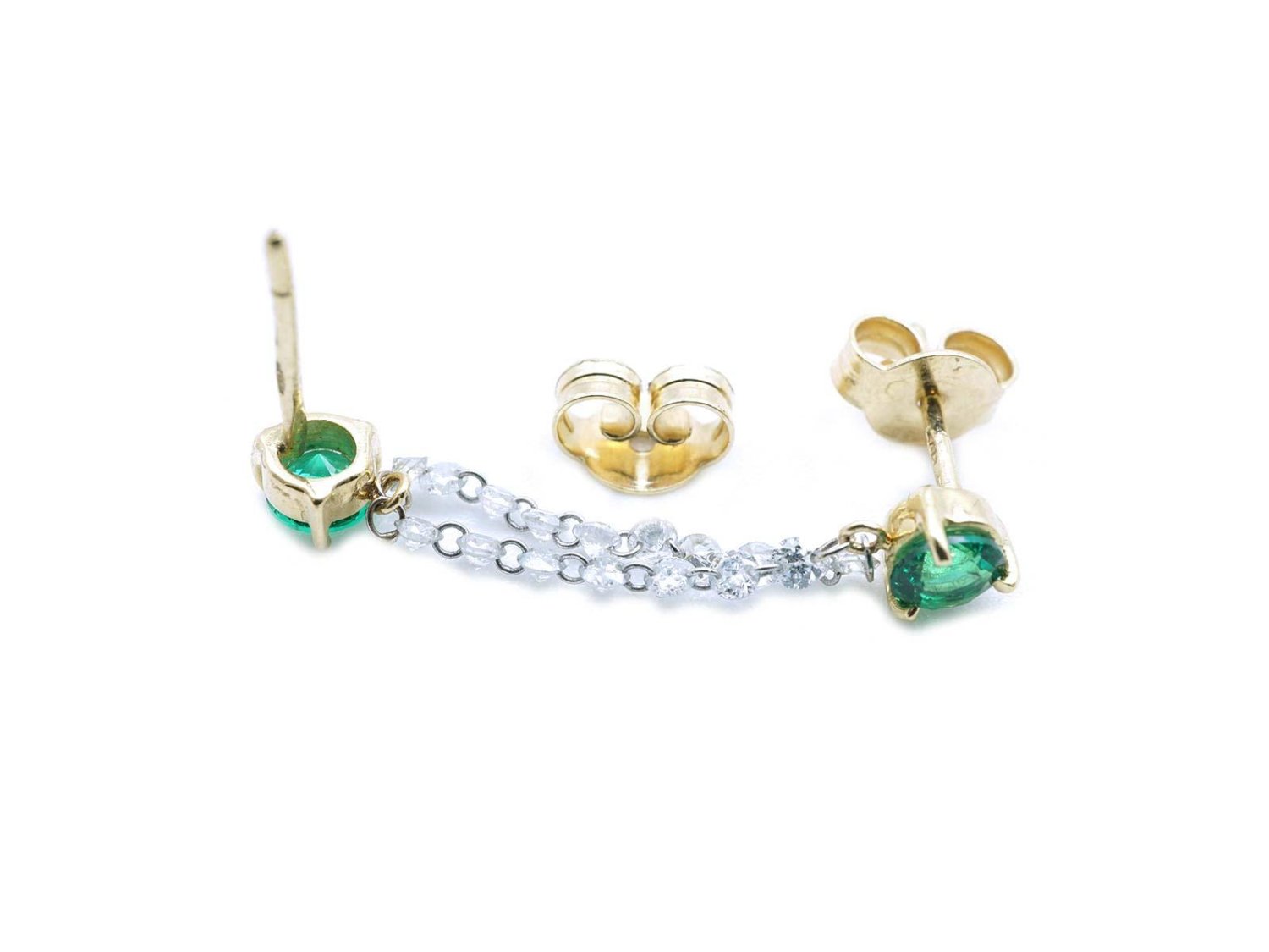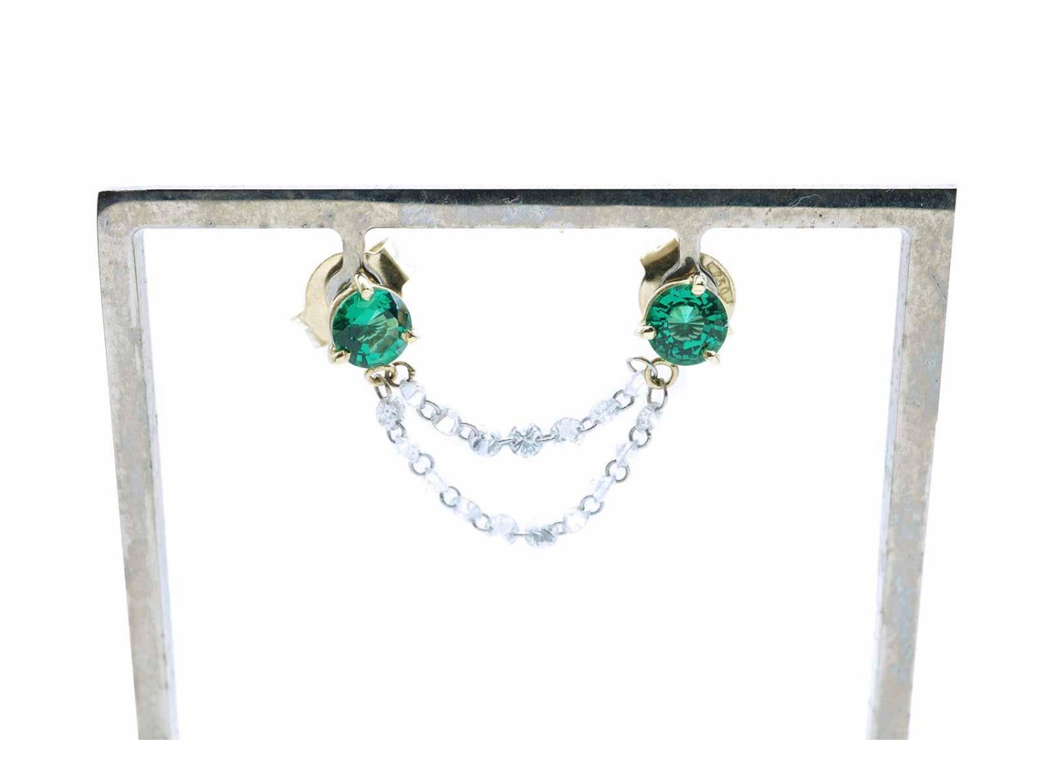 PARLAPIANO orecchino singolo Solitario per due buchi in oro giallo 18Kt con diamanti ct 0.48 e smeraldi ct 0.50 Ref. 0273/22. NUOVI!