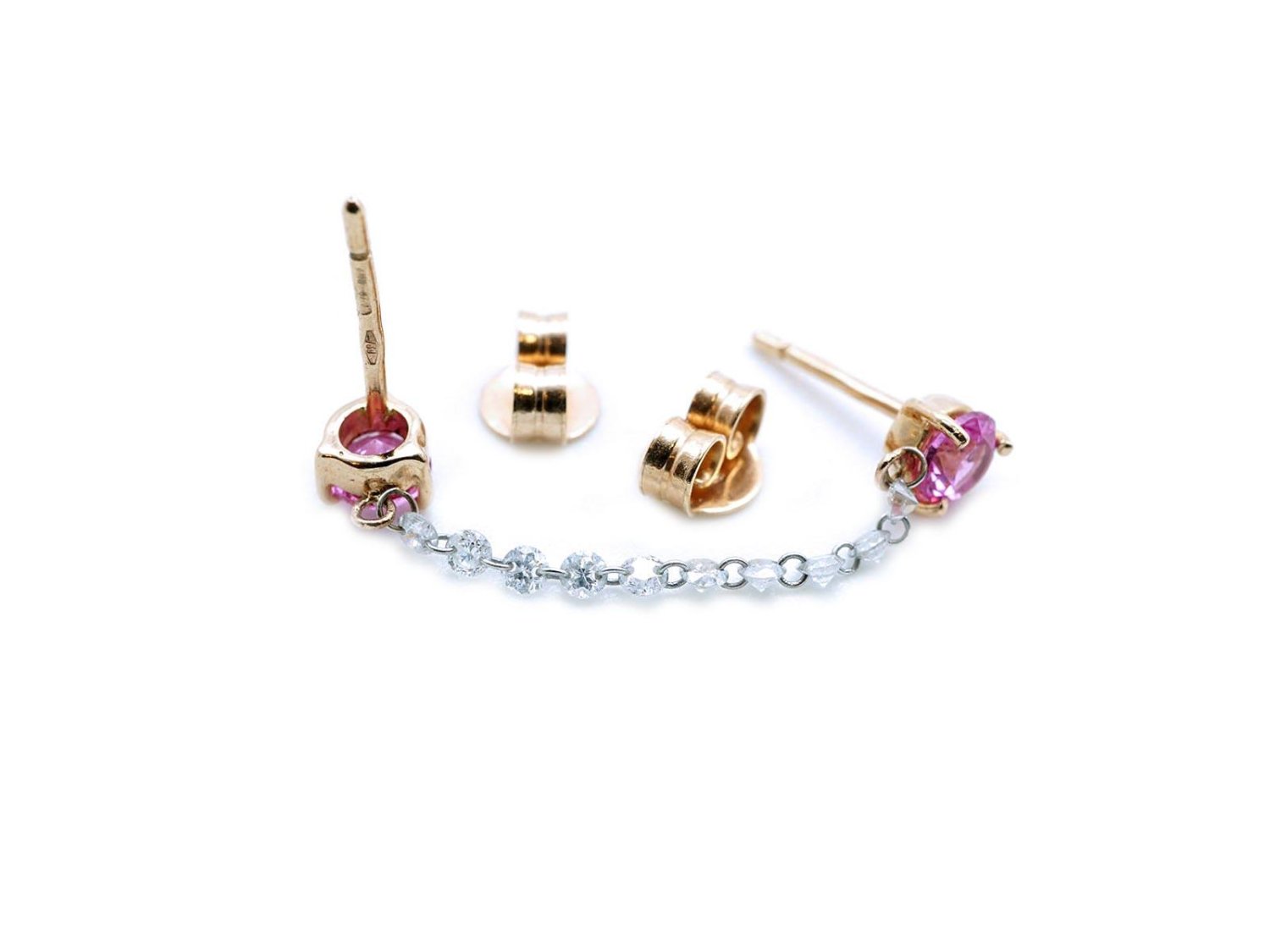 PARLAPIANO orecchino singolo Solitario per due buchi in oro rosa 18Kt con diamanti ct 0.30 e zaffiri rosa ct 0.668 Ref. 0273/11/5. NUOVI!