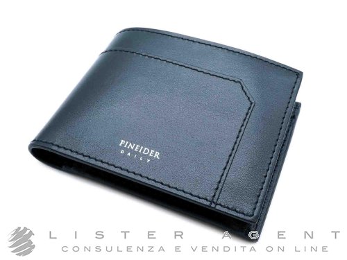 PINEIDER portafoglio Daily 23 in pelle di vitello nera 3CC con porta monete Ref. PTS708056. NUOVO!