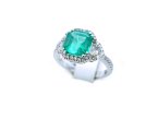 RAITERI anello in oro bianco 18Kt con diamanti ct 0.30 + 0.47 G Vs e smeraldo ct 2.45. NUOVO!