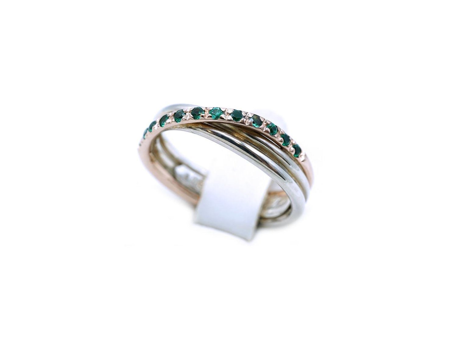 RUBINIA anello Filodellavita 3 fili in oro rosa 9kt e argento 925 con smeraldi ct 0.20 Misura 13 Ref. AN8ARSM. NUOVO!