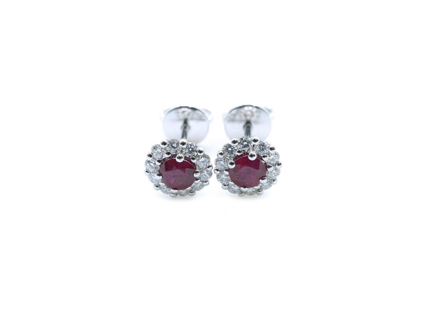 SONGA orecchini Cestino in oro bianco 18Kt con diamanti ct 0.39 G/H Si e rubini ct 0.52 Ref. 230335. NUOVI!