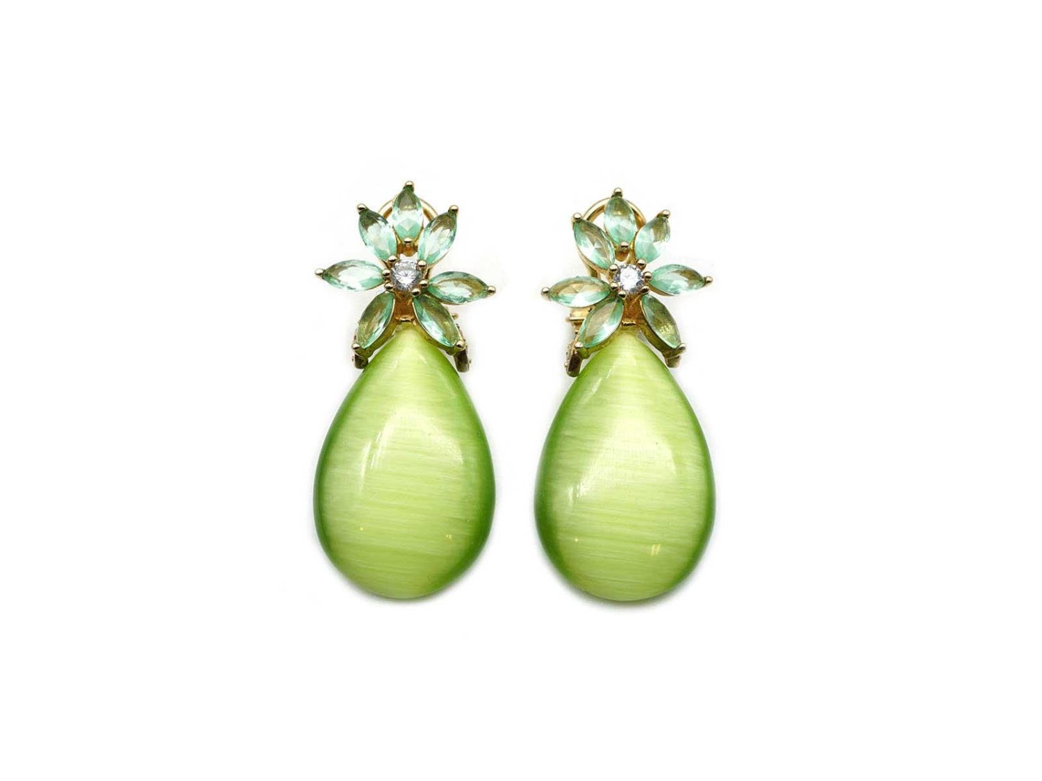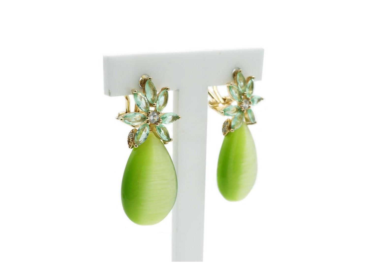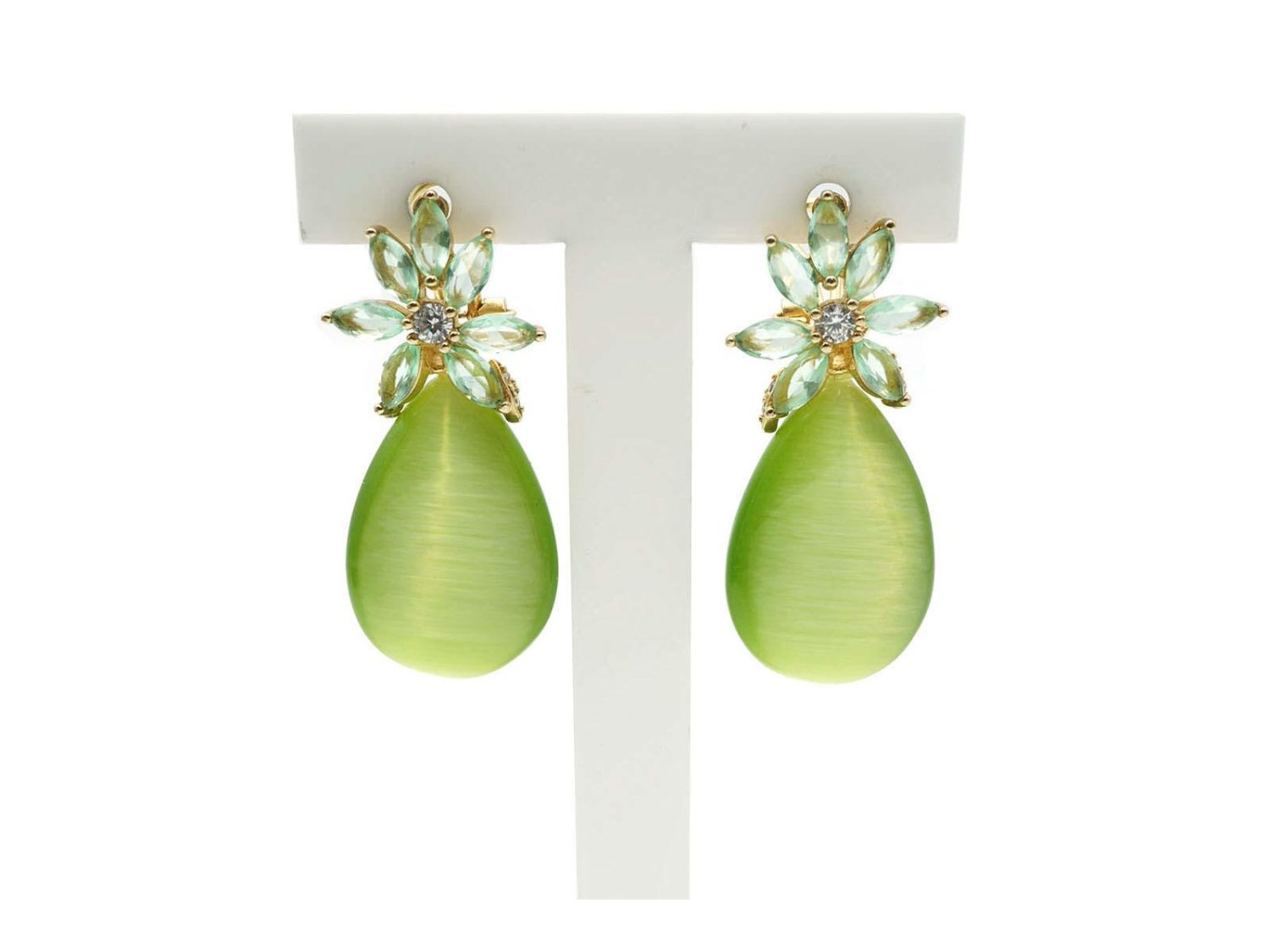 ULTIMA EDIZIONE orecchini Fiori con Goccia in argento 925 con zirconi e pietra anaturale Ref. 7256. NUOVI!